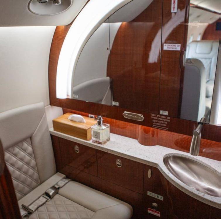 Туалет расположен в хвостовой части самолета. Герметичное и подогреваемое багажное отделение доступно с внешней стороны фюзеляжа. Самолет оснащен ЖК-мониторами, подключенными к видеосистеме, аудиосистемой класса Hi-End, а также высокоскоростным интернетом.