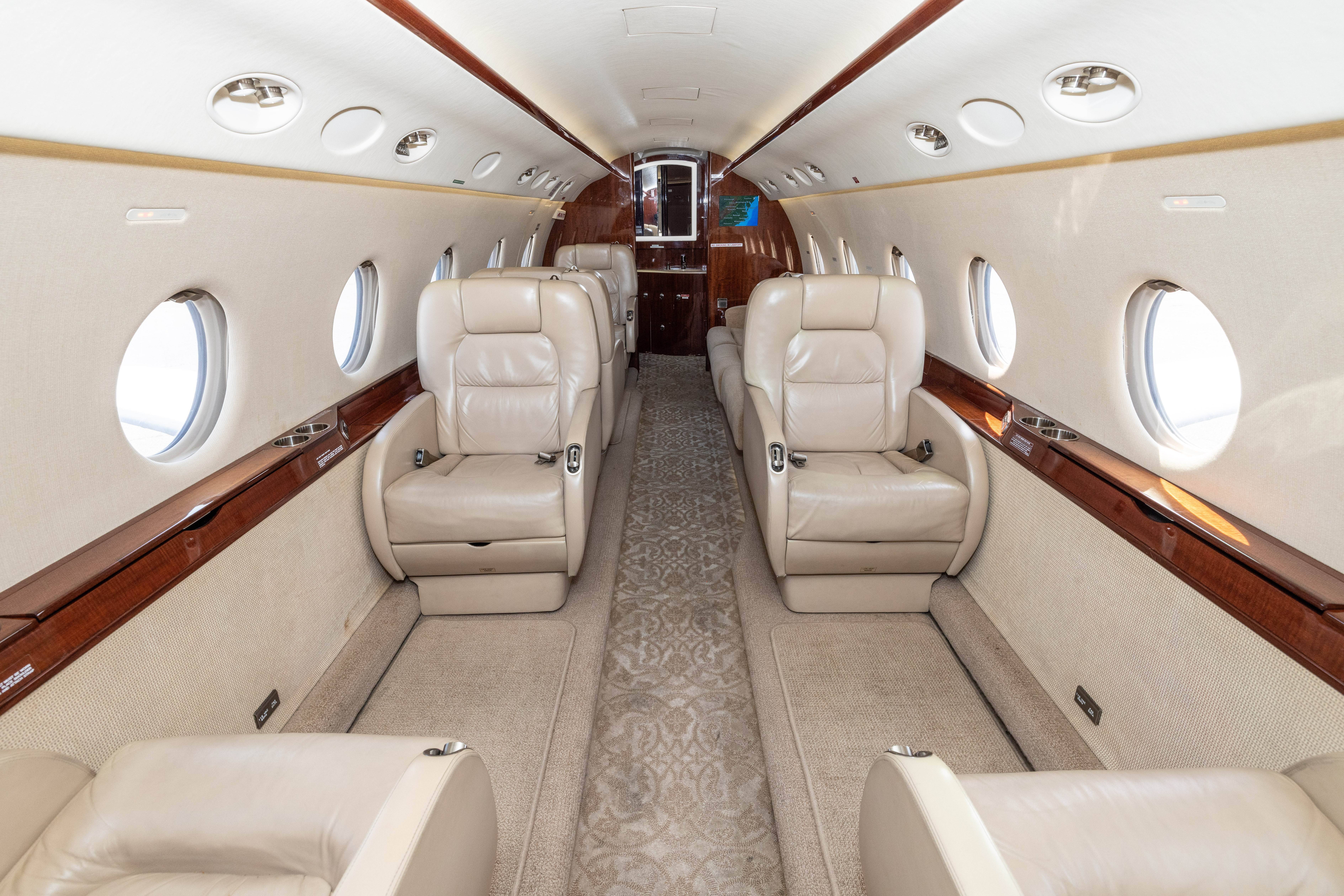 Пассажирский салон G200 - лучший в своем классе. Две пассажирские зоны позволяют комфортно расположиться компании до 11 человек, в том числе и людям высокого роста. Высота салона за счет широкого углубления в полу составляет 1,91 м, что, безусловно, является преимуществом среди самолетов данного класса. G200 предлагает три салонных модификации: административный (Executive), универсальный (Universal) и фирменный (Hallmark).