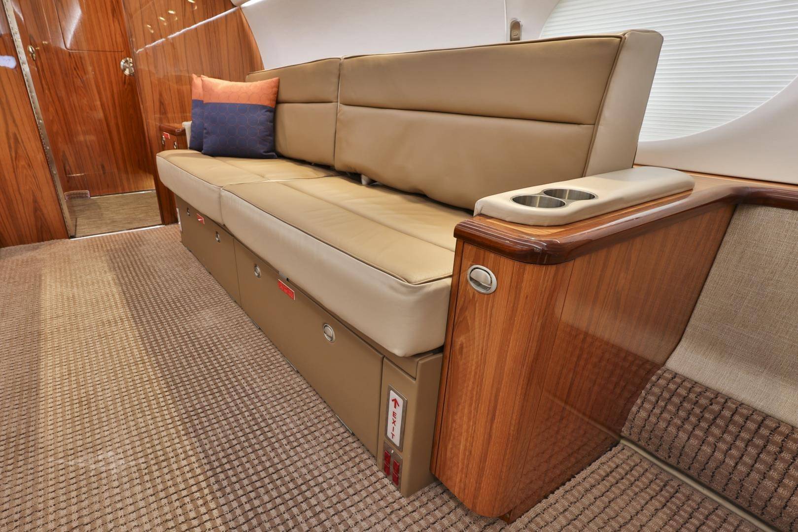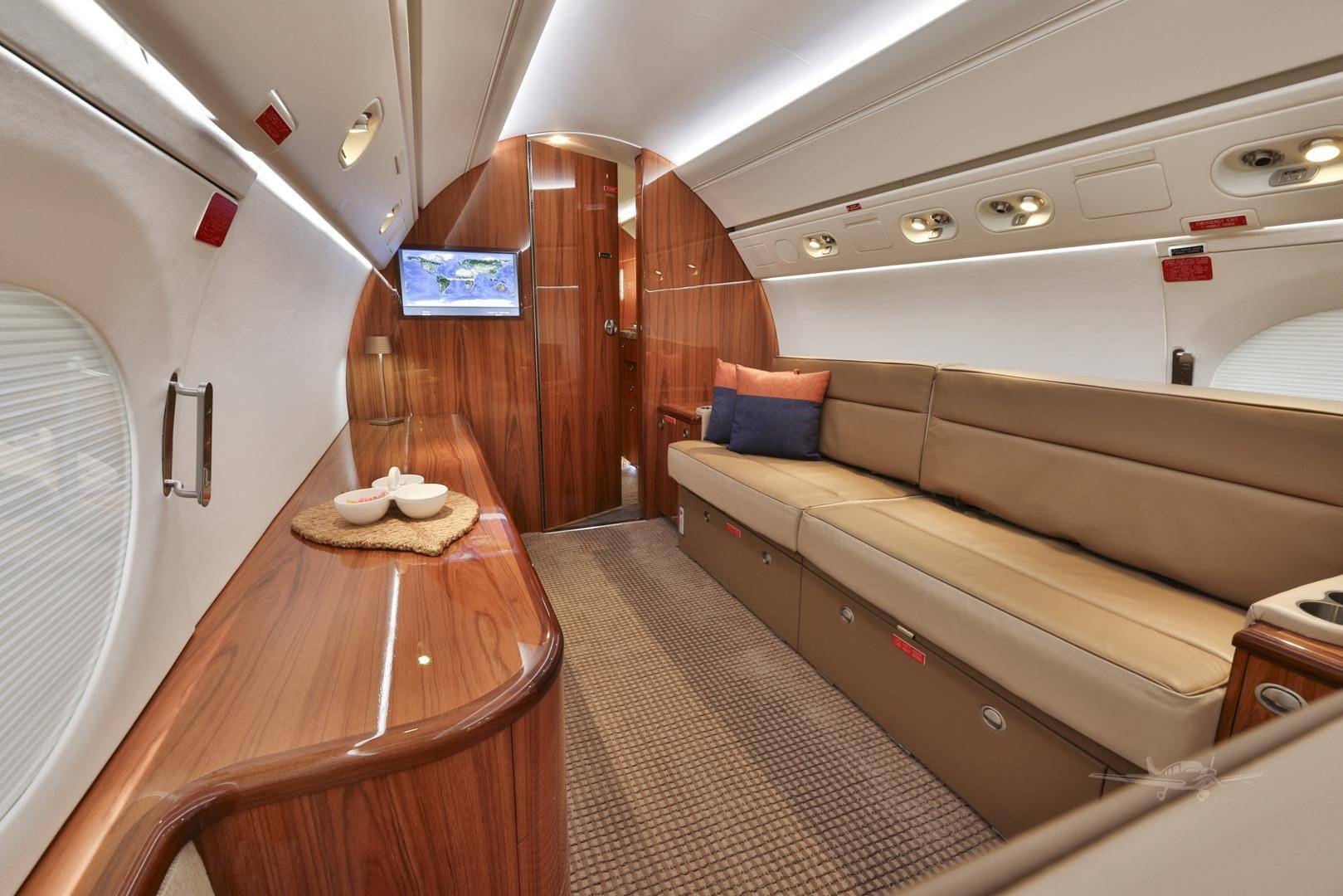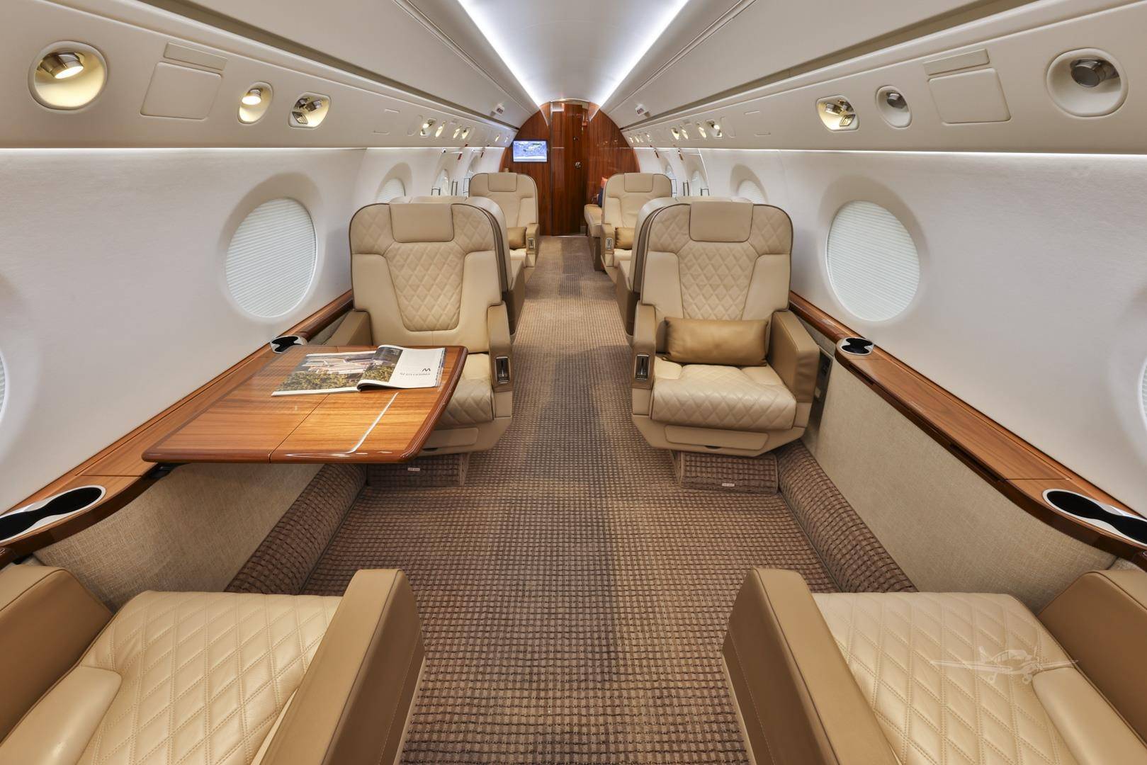 Стандартные компоновки G450 рассчитаны на размещение 12– 16 пассажиров. Салон разделен на три зоны, микроклимат в которых регулируется индивидуально. Высокий потолок и большое расстояние между креслами позволяют пассажирам передвигаться во время полета и чувствовать себя свободно. Шесть больших иллюминаторов — визитная карточка G450. Они визуально расширяют салон, делают его светлым и просторным, а также открывают взору восхитительные виды. Опциональный интерьер Elite невероятно стильный и свежий с точки зрения дизайна. В набор входят опциональные кресла с электроприводом и функцией массажа, управление настройками салона со смартфона и дополнительное оборудование системой развлечений.