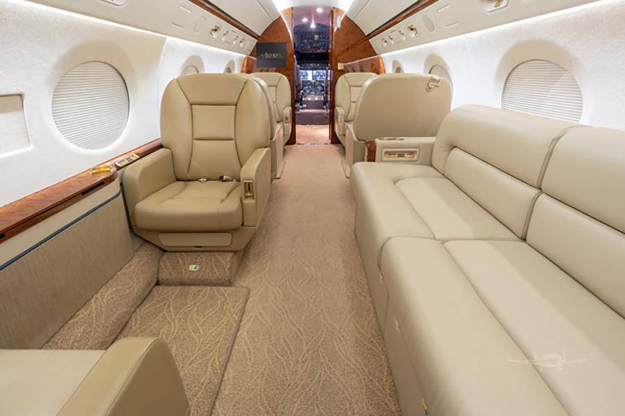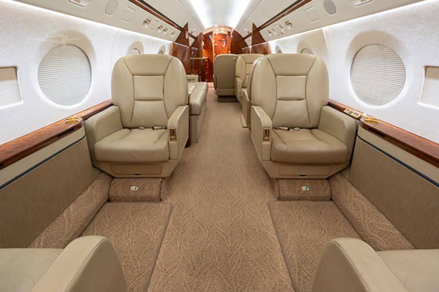 Стандартные компоновки G450 рассчитаны на размещение 12– 16 пассажиров. Салон разделен на три зоны, микроклимат в которых регулируется индивидуально. Высокий потолок и большое расстояние между креслами позволяют пассажирам передвигаться во время полета и чувствовать себя свободно. Шесть больших иллюминаторов — визитная карточка G450. Они визуально расширяют салон, делают его светлым и просторным, а также открывают взору восхитительные виды. Опциональный интерьер Elite невероятно стильный и свежий с точки зрения дизайна. В набор входят опциональные кресла с электроприводом и функцией массажа, управление настройками салона со смартфона и дополнительное оборудование системой развлечений.