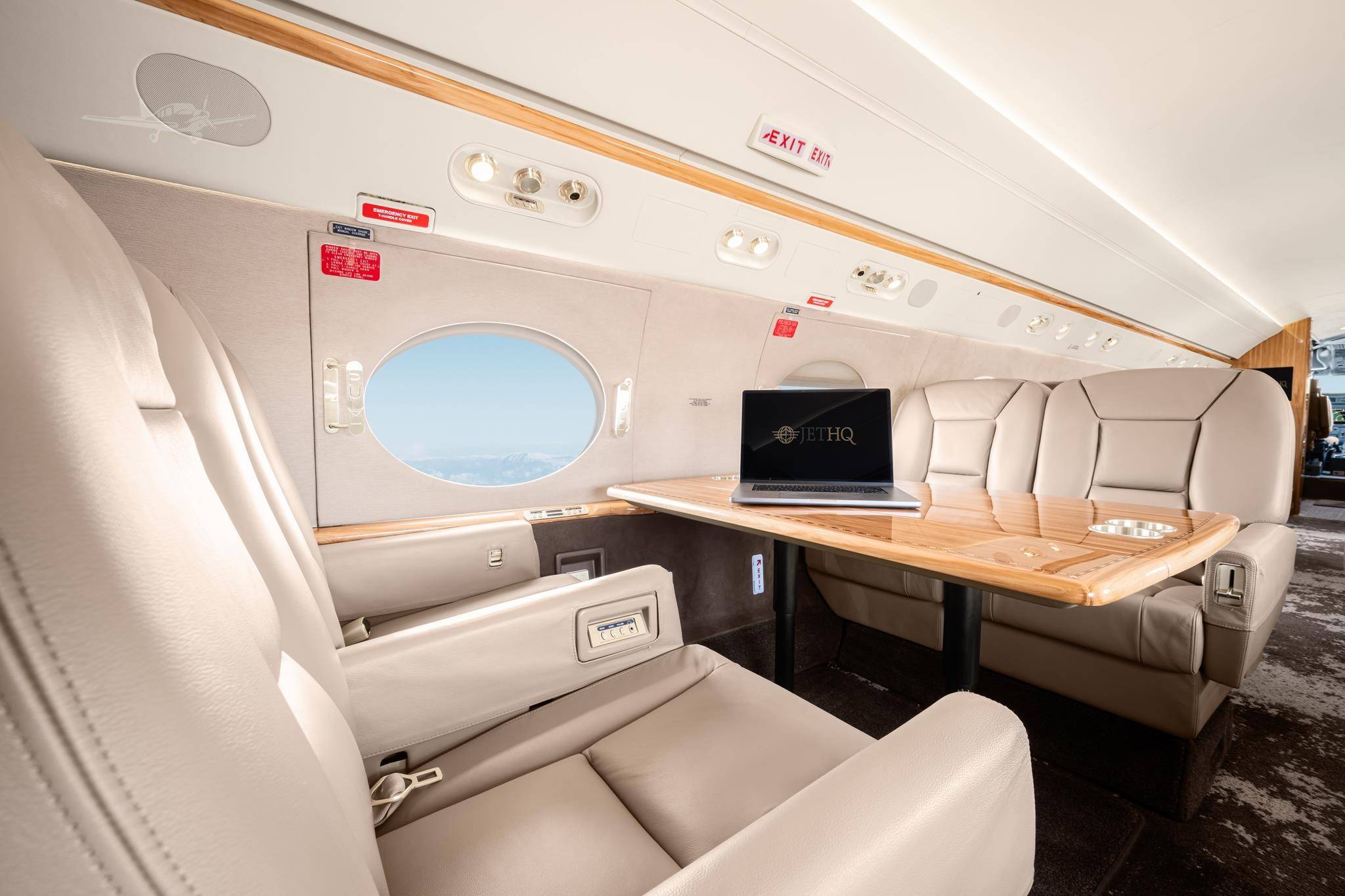 Стандартные компоновки G450 рассчитаны на размещение 12– 16 пассажиров. Салон разделен на три зоны, микроклимат в которых регулируется индивидуально. Высокий потолок и большое расстояние между креслами позволяют пассажирам передвигаться во время полета и чувствовать себя свободно. Шесть больших иллюминаторов — визитная карточка G450. Они визуально расширяют салон, делают его светлым и просторным, а также открывают взору восхитительные виды. Опциональный интерьер Elite невероятно стильный и свежий с точки зрения дизайна. В набор входят опциональные кресла с электроприводом и функцией массажа, управление настройками салона со смартфона и дополнительное оборудование системой развлечений.
