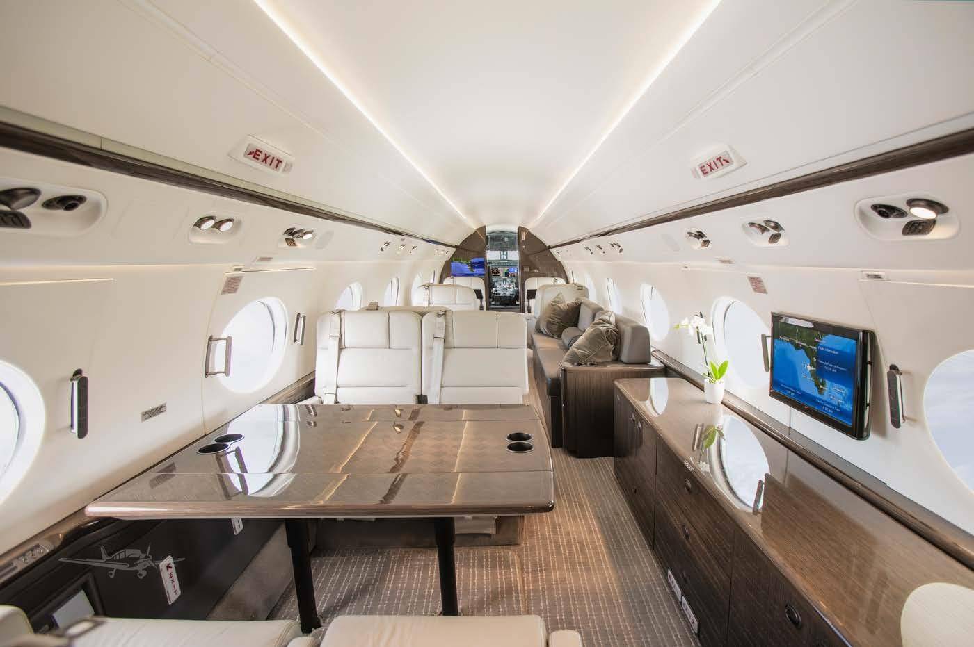 Стандартные компоновки G450 рассчитаны на размещение 12– 16 пассажиров. Салон разделен на три зоны, микроклимат в которых регулируется индивидуально. Высокий потолок и большое расстояние между креслами позволяют пассажирам передвигаться во время полета и чувствовать себя свободно. Шесть больших иллюминаторов — визитная карточка G450. Они визуально расширяют салон, делают его светлым и просторным, а также открывают взору восхитительные виды. Опциональный интерьер Elite невероятно стильный и свежий с точки зрения дизайна. В набор входят опциональные кресла с электроприводом и функцией массажа, управление настройками салона со смартфона и дополнительное оборудование системой развлечений.