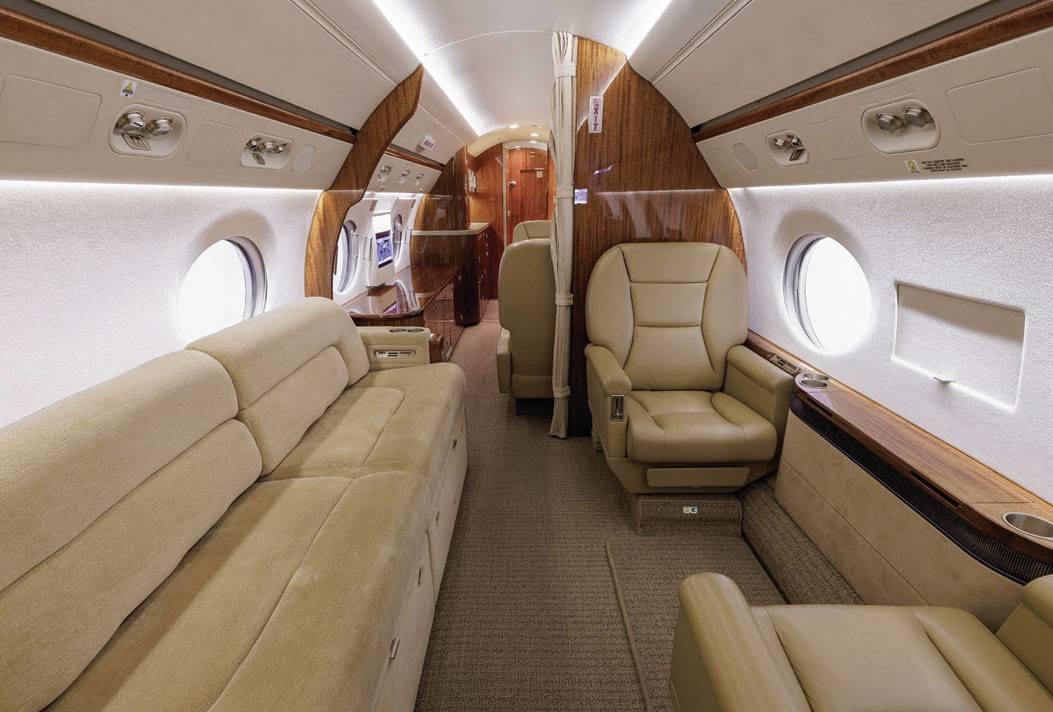 Стандартные компоновки G450 рассчитаны на размещение 12– 16 пассажиров. Салон разделен на три зоны, микроклимат в которых регулируется индивидуально. Высокий потолок и большое расстояние между креслами позволяют пассажирам передвигаться во время полета и чувствовать себя свободно. Шесть больших иллюминаторов — визитная карточка G450. Они визуально расширяют салон, делают его светлым и просторным, а также открывают взору восхитительные виды. Опциональный интерьер Elite невероятно стильный и свежий с точки зрения дизайна. В набор входят опциональные кресла с электроприводом и функцией массажа, управление настройками салона со смартфона и дополнительное оборудование системой развлечений.