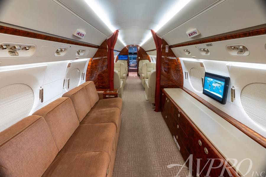 Стандартные компоновки G450 рассчитаны на размещение 12– 16 пассажиров. Салон разделен на три зоны, микроклимат в которых регулируется индивидуально. Высокий потолок и большое расстояние между креслами позволяют пассажирам передвигаться во время полета и чувствовать себя свободно. Шесть больших иллюминаторов — визитная карточка G450. Они визуально расширяют салон, делают его светлым и просторным, а также открывают взору восхитительные виды. Опциональный интерьер Elite невероятно стильный и свежий с точки зрения дизайна. В набор входят опциональные кресла с электроприводом и функцией массажа, управление настройками салона со смартфона и дополнительное оборудование системой развлечений.