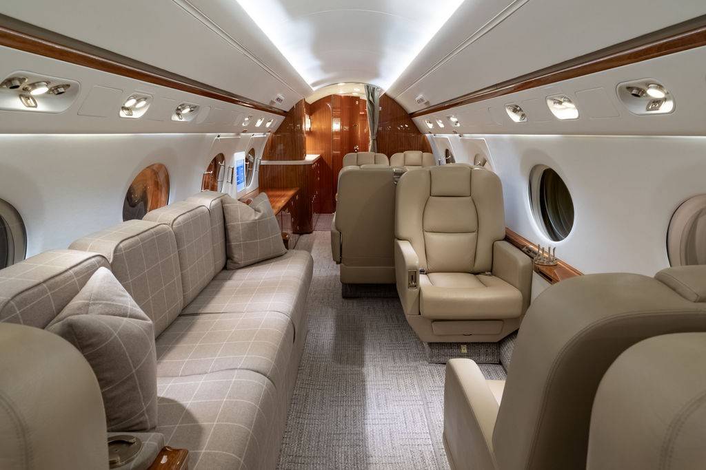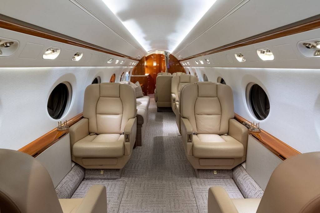 Стандартные компоновки G450 рассчитаны на размещение 12– 16 пассажиров. Салон разделен на три зоны, микроклимат в которых регулируется индивидуально. Высокий потолок и большое расстояние между креслами позволяют пассажирам передвигаться во время полета и чувствовать себя свободно. Шесть больших иллюминаторов — визитная карточка G450. Они визуально расширяют салон, делают его светлым и просторным, а также открывают взору восхитительные виды. Опциональный интерьер Elite невероятно стильный и свежий с точки зрения дизайна. В набор входят опциональные кресла с электроприводом и функцией массажа, управление настройками салона со смартфона и дополнительное оборудование системой развлечений.