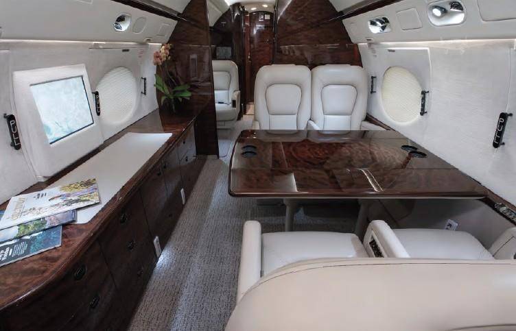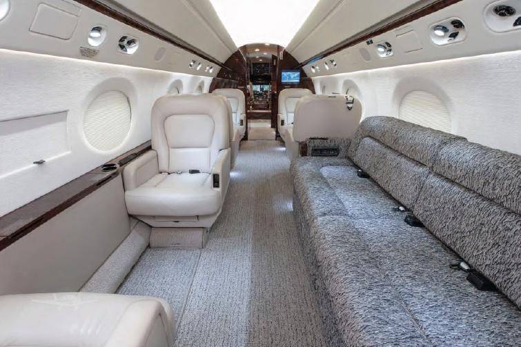 Салон оптимален для длительных перелетов. В полный рост в нем могут стоять пассажиры почти любого роста. Дополнительное ощущение простора (хотя фюзеляж значительно уже, чем у Global 6000) создают огромные овальные иллюминаторы — визитная карточка Gulfstream.