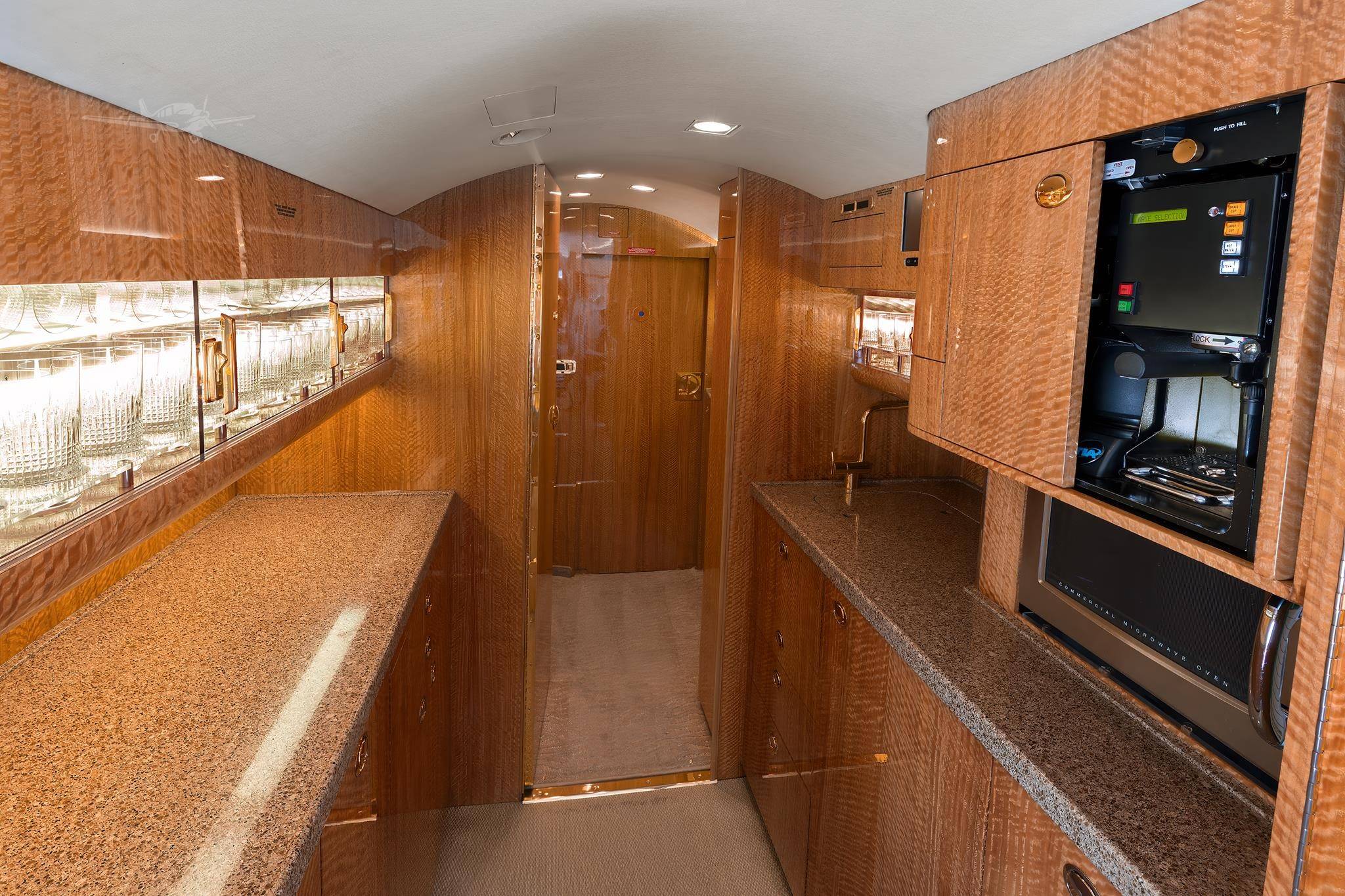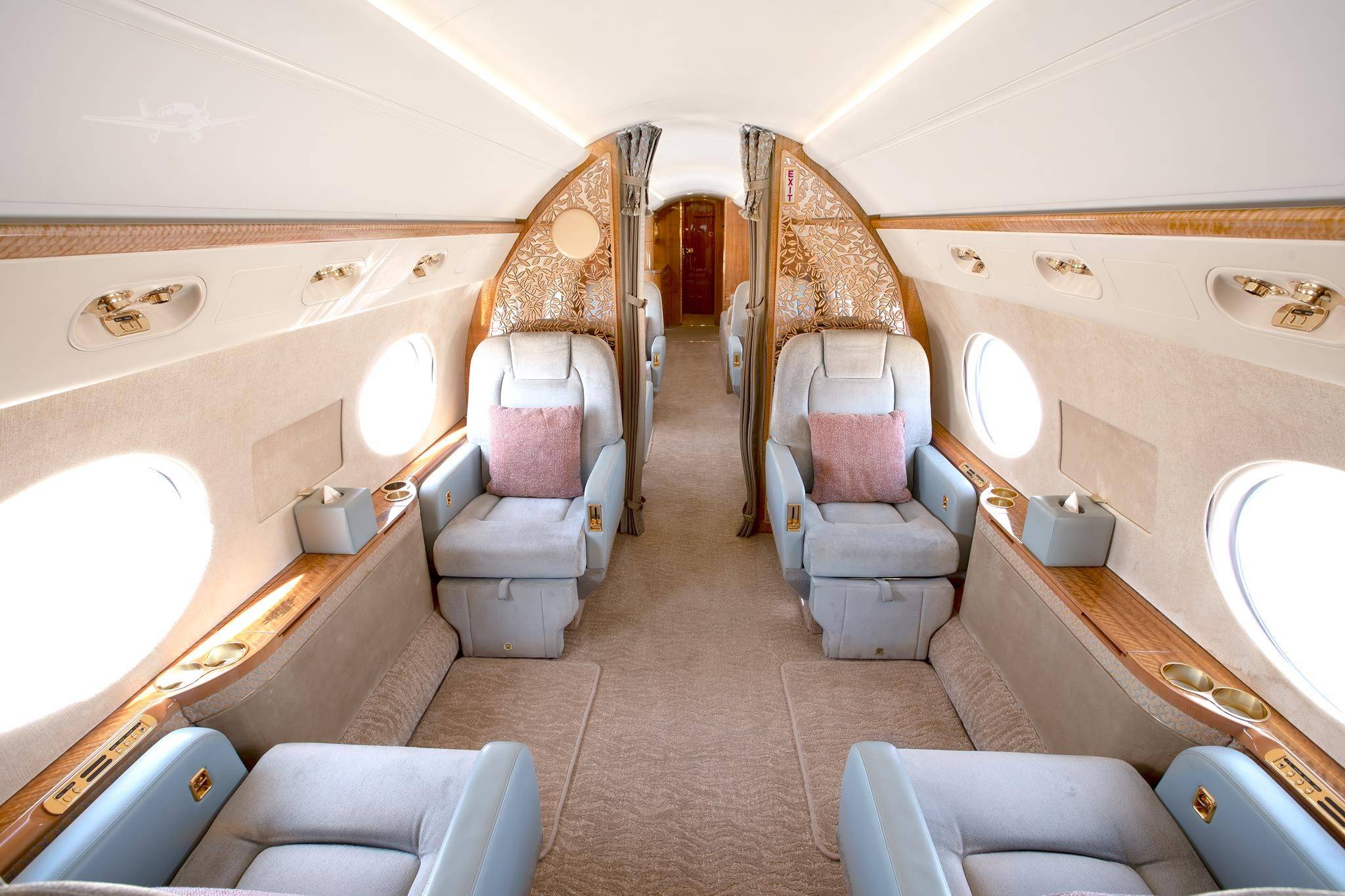 Салон оптимален для длительных перелетов. В полный рост в нем могут стоять пассажиры почти любого роста. Дополнительное ощущение простора (хотя фюзеляж значительно уже, чем у Global 6000) создают огромные овальные иллюминаторы — визитная карточка Gulfstream.