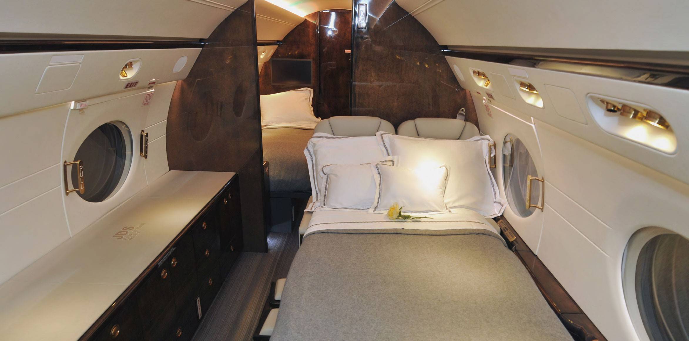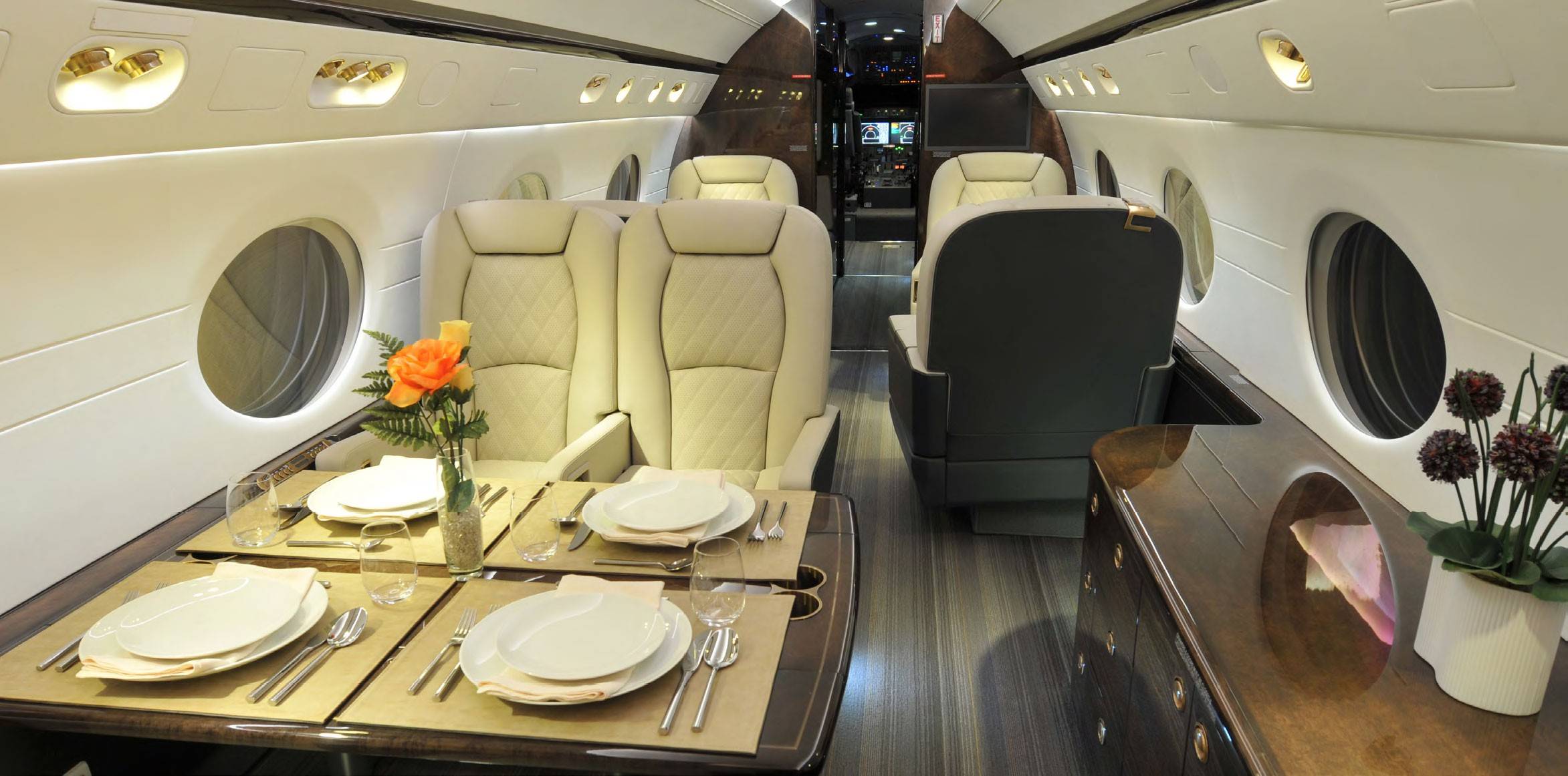 Салон оптимален для длительных перелетов. В полный рост в нем могут стоять пассажиры почти любого роста. Дополнительное ощущение простора (хотя фюзеляж значительно уже, чем у Global 6000) создают огромные овальные иллюминаторы — визитная карточка Gulfstream.