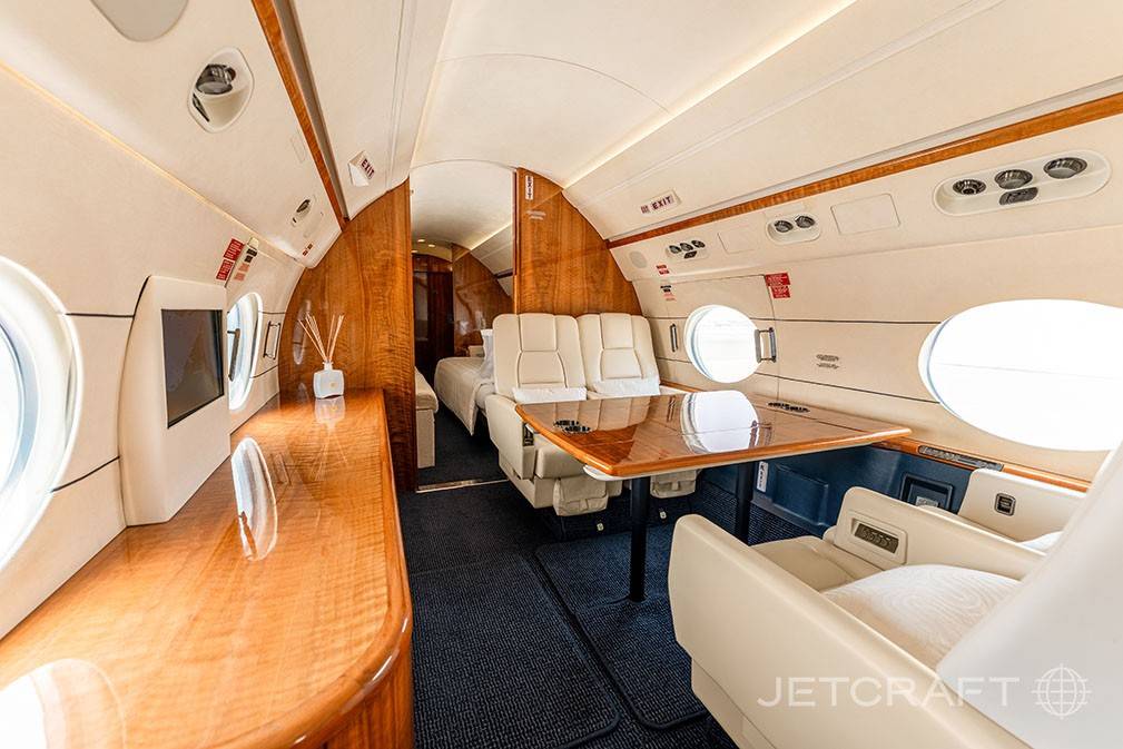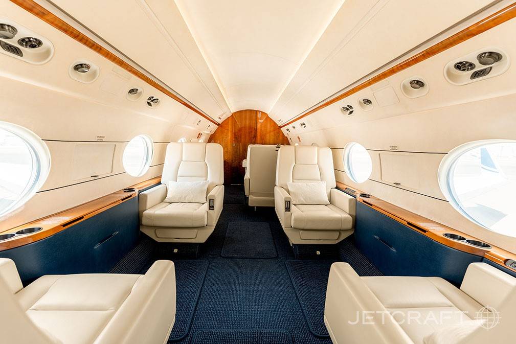 Салон оптимален для длительных перелетов. В полный рост в нем могут стоять пассажиры почти любого роста. Дополнительное ощущение простора (хотя фюзеляж значительно уже, чем у Global 6000) создают огромные овальные иллюминаторы — визитная карточка Gulfstream.