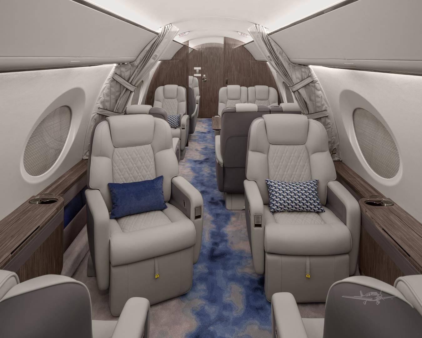 и функционален, что пассажиры чувствуют себя как в привычных условиях на земле. Пассажирский салон G600 длиной 13,77 м — самый длинный среди самолетов того же класса; его можно разделить на четыре жилых помещения, и только Gulfstream может предложить варианты с носовым или хвостовым