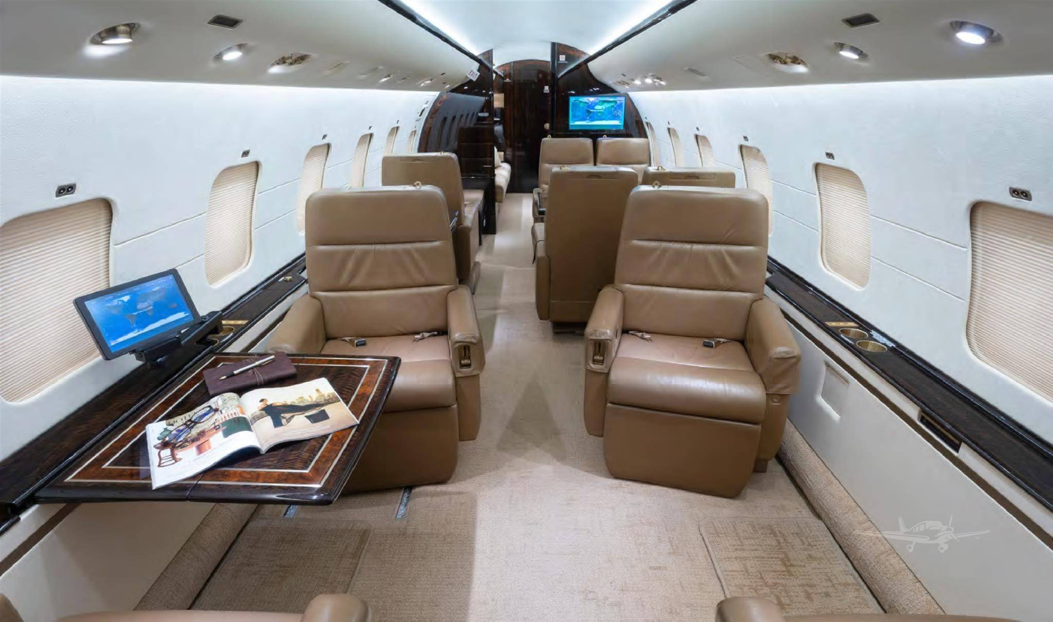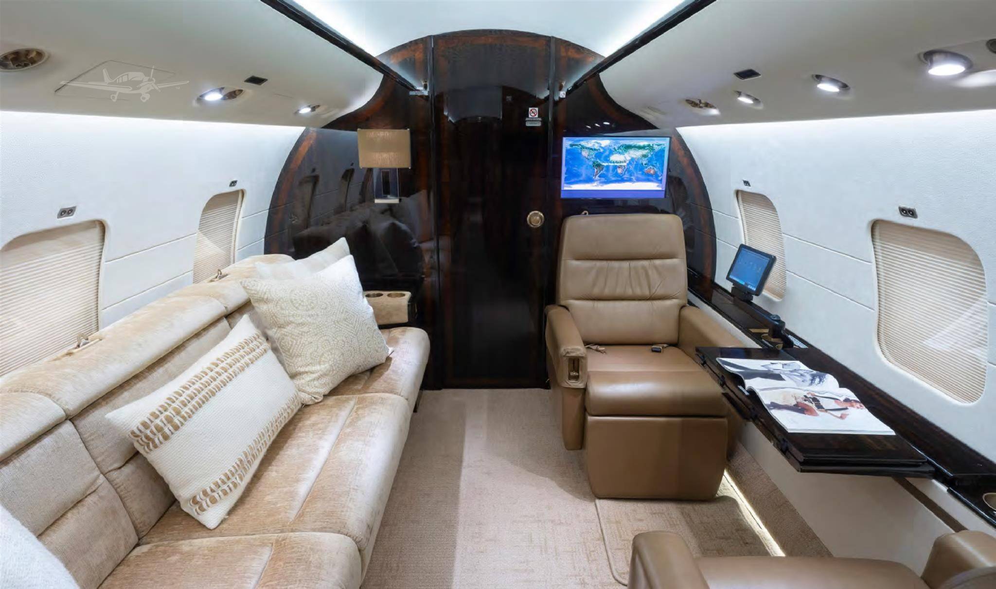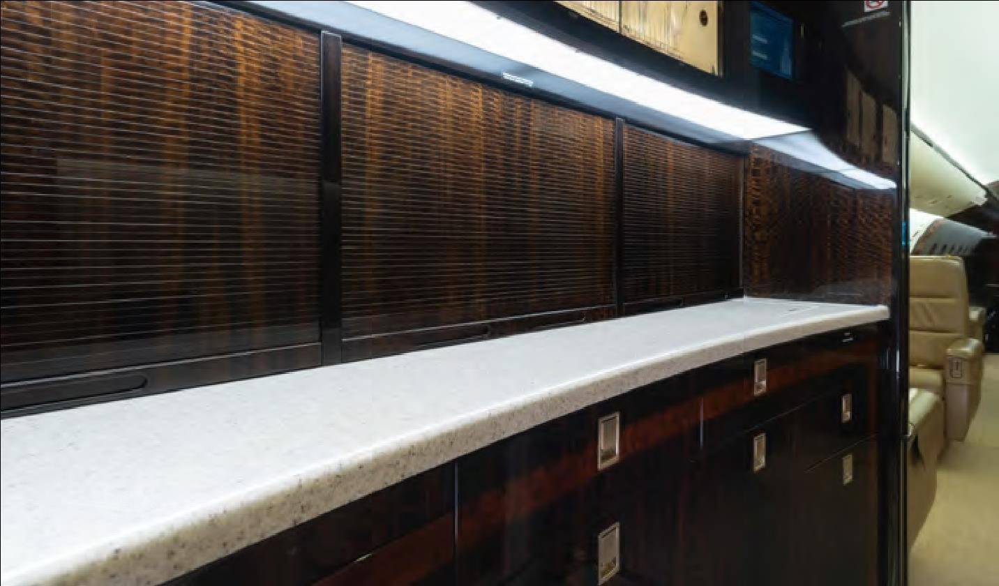 Предлагаемые Bombardier на протяжении последних пары лет сочетания материалов и функциональных модулей интерьера сделали Global 6000 одним из самых красивых и при этом «домашних» джетов. Чего стоит диагональный шкаф с телевизором в хвостовой каюте, напоминающей из-за него вполне земную комнату, а также не лишенная условности, но все же душевая кабина. В интерьере высотой 191 см можно ходить не наклоняясь. Ход у кресел с электроусилителями потрясающе легкий и плавный, а их эргономика существенно улучшилась. В отличие от предыдущих поколений Global, во всех новых самолетах можно управлять функциями салона, используя приложение на смартфоне или планшетном компьютере.