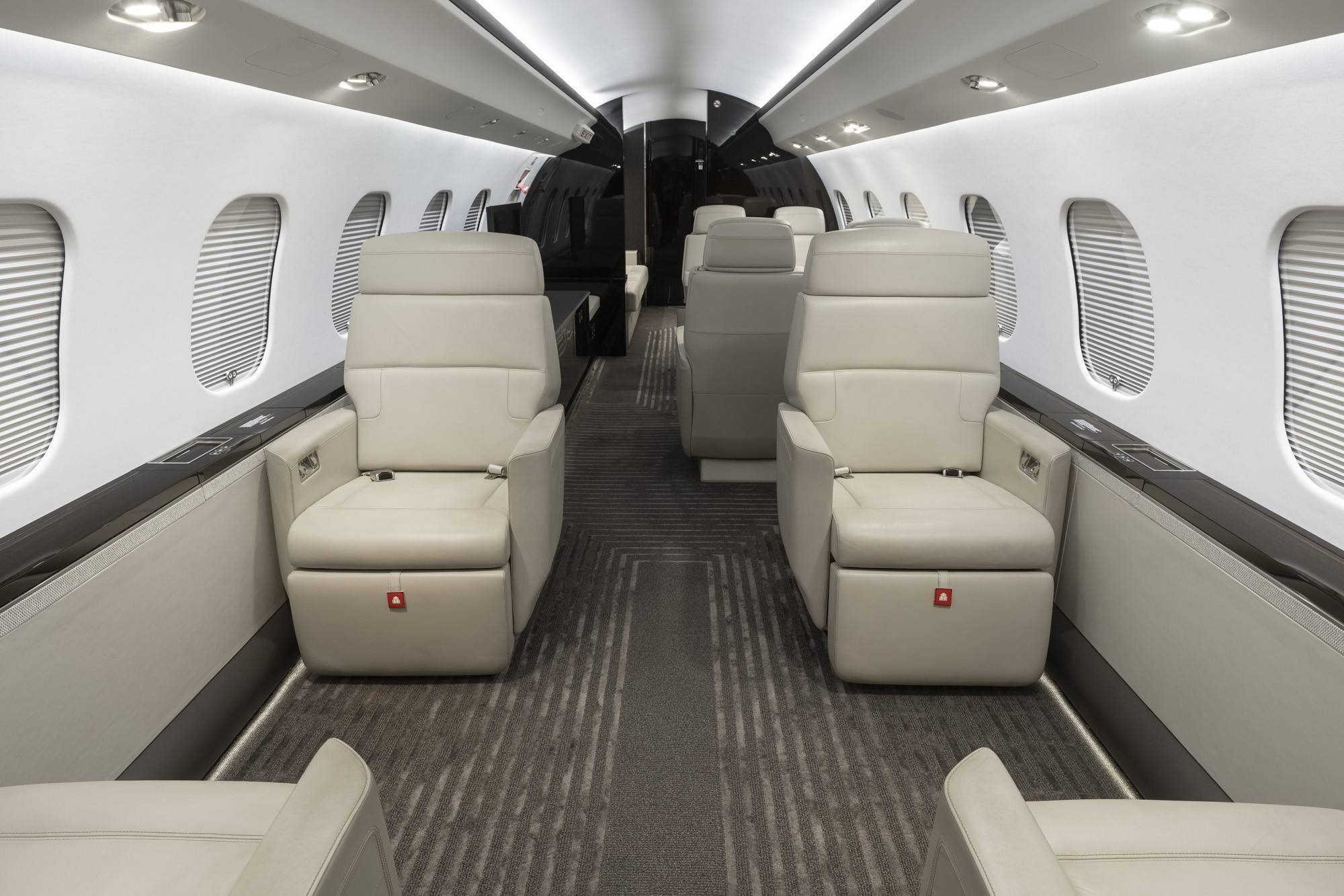 Предлагаемые Bombardier на протяжении последних пары лет сочетания материалов и функциональных модулей интерьера сделали Global 6000 одним из самых красивых и при этом «домашних» джетов. Чего стоит диагональный шкаф с телевизором в хвостовой каюте, напоминающей из-за него вполне земную комнату, а также не лишенная условности, но все же душевая кабина. В интерьере высотой 191 см можно ходить не наклоняясь. Ход у кресел с электроусилителями потрясающе легкий и плавный, а их эргономика существенно улучшилась. В отличие от предыдущих поколений Global, во всех новых самолетах можно управлять функциями салона, используя приложение на смартфоне или планшетном компьютере.