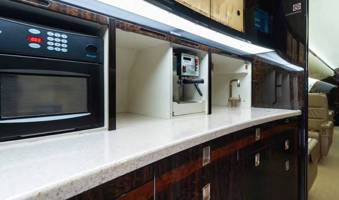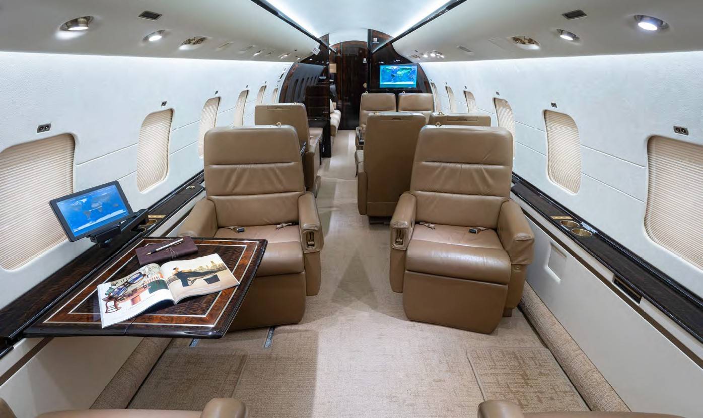 Предлагаемые Bombardier на протяжении последних пары лет сочетания материалов и функциональных модулей интерьера сделали Global 6000 одним из самых красивых и при этом «домашних» джетов. Чего стоит диагональный шкаф с телевизором в хвостовой каюте, напоминающей из-за него вполне земную комнату, а также не лишенная условности, но все же душевая кабина. В интерьере высотой 191 см можно ходить не наклоняясь. Ход у кресел с электроусилителями потрясающе легкий и плавный, а их эргономика существенно улучшилась. В отличие от предыдущих поколений Global, во всех новых самолетах можно управлять функциями салона, используя приложение на смартфоне или планшетном компьютере.