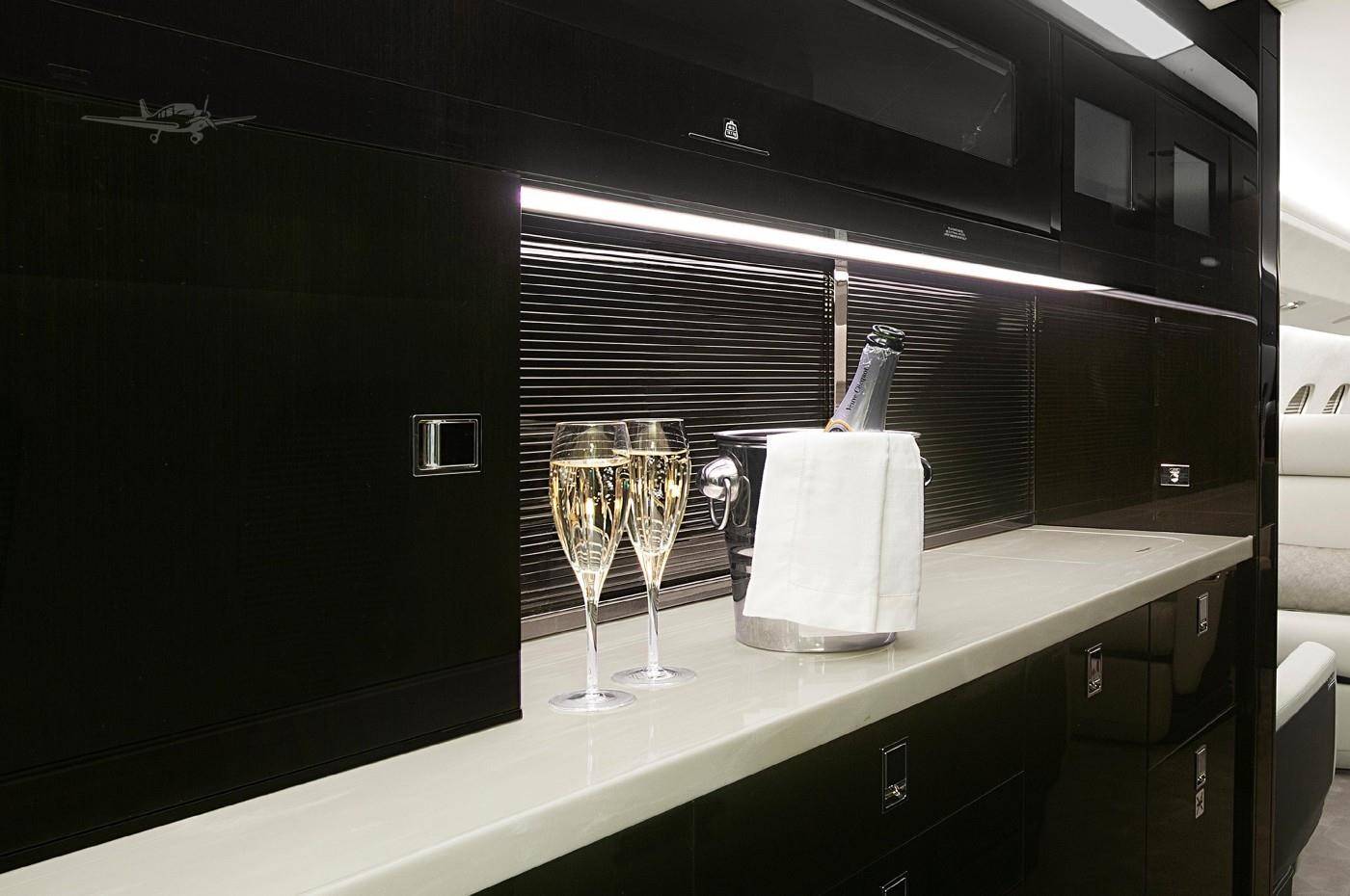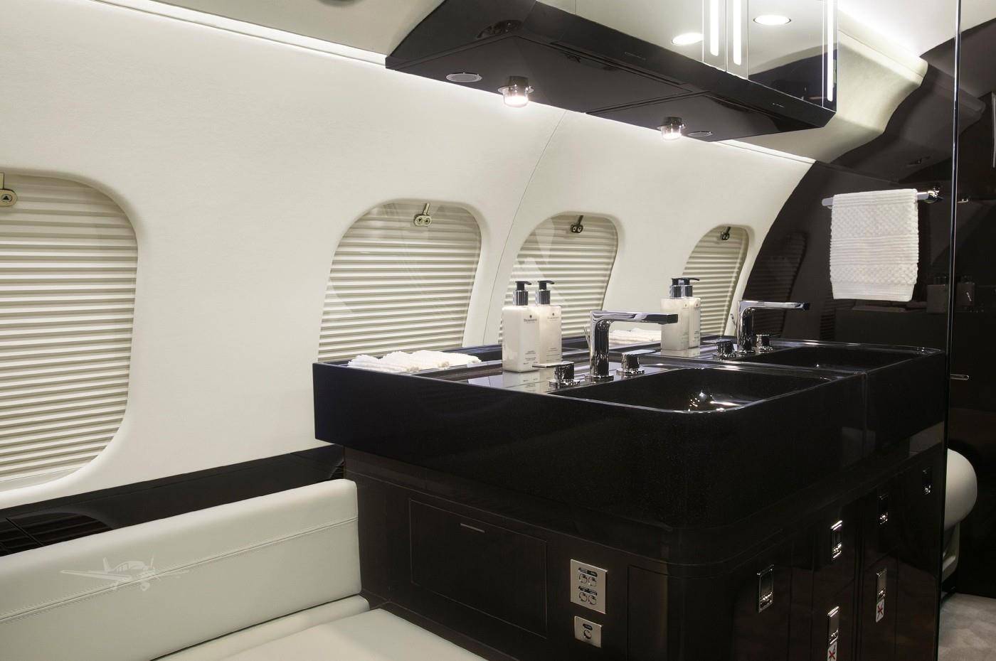 En Suite - современный стиль и удобство использования, включают раковину и туалет, а также шкаф для хранения вещей с вешалкой и стеллажами. Самолет Global 6500 также является первым бизнес-джетом, предлагающим доступный стоячий душ, что означает, что вы можете прибыть в пункт назначения обновленным и готовым к новому дню.