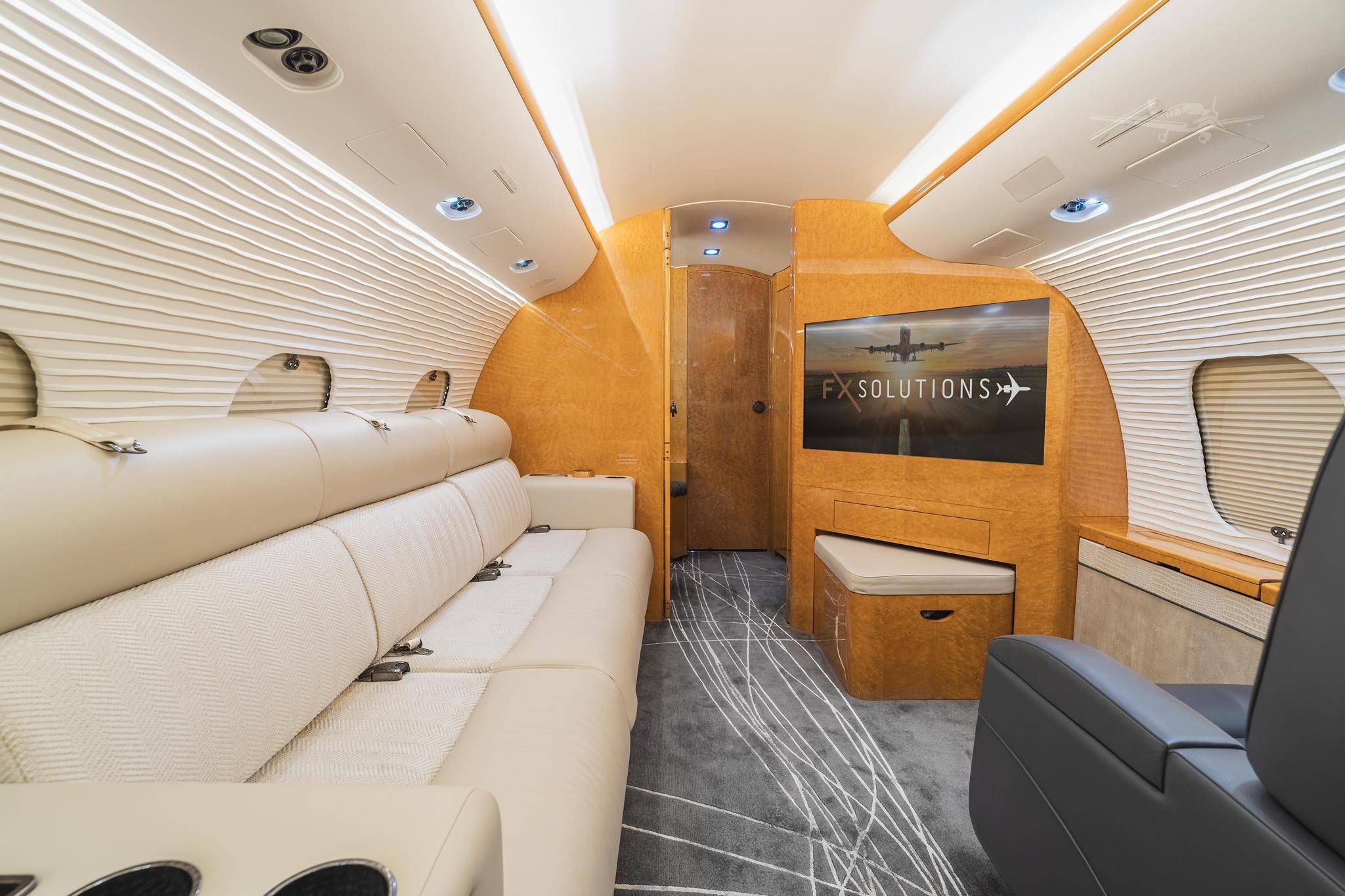 Огромное внимание конструкторы уделили вопросам эксплуатации и безопасности полетов, не меньшее - удобству пассажиров. Салон разделен на три отсека: его общая длина 14,63 м, максимальная ширина 2,49 м, высота 1,90 м. Существует большое количество вариантов отделки салона. В фюзеляже оборудованы места отдыха для членов экипажа, большая кухня, туалет и багажный отсек.