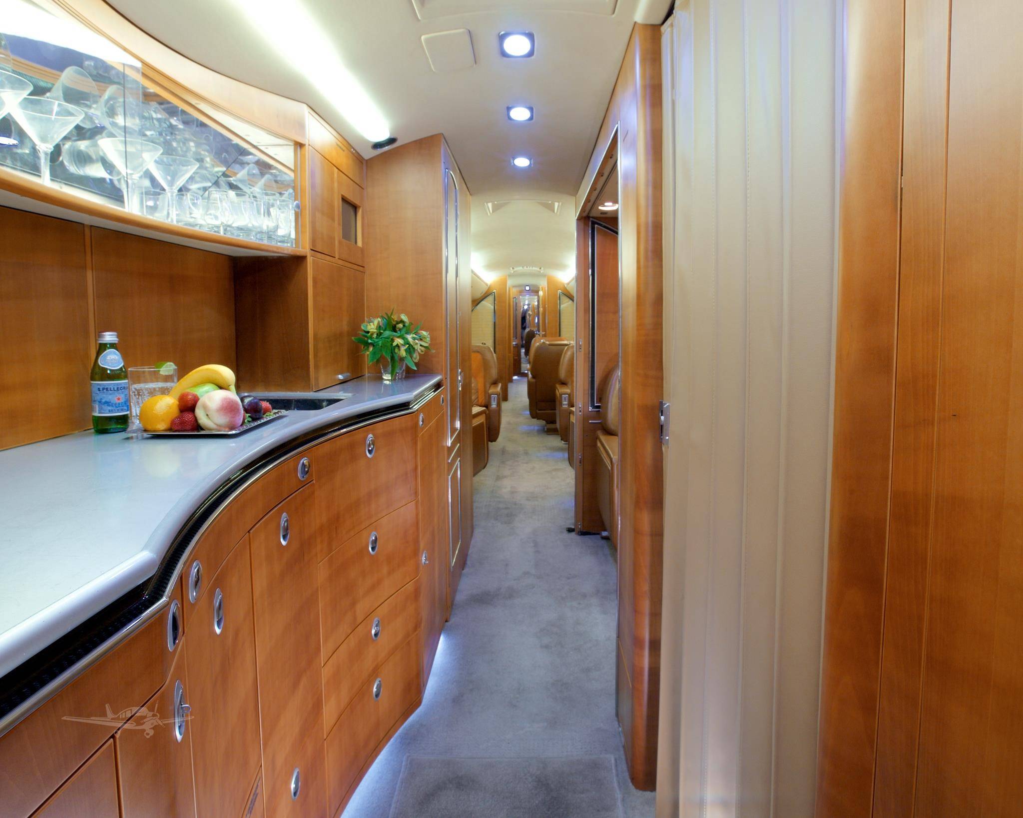 Огромное внимание конструкторы уделили вопросам эксплуатации и безопасности полетов, не меньшее - удобству пассажиров. Салон разделен на три отсека: его общая длина 14,63 м, максимальная ширина 2,49 м, высота 1,90 м. Существует большое количество вариантов отделки салона. В фюзеляже оборудованы места отдыха для членов экипажа, большая кухня, туалет и багажный отсек.