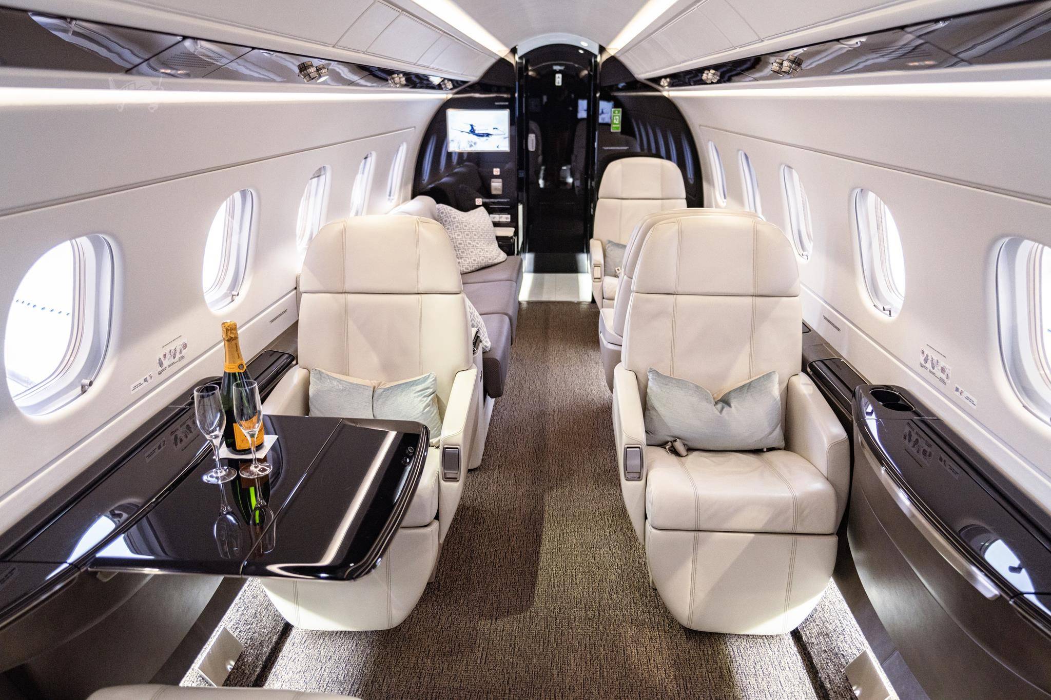 В самолете могут разместиться до 12 человек, но наиболее комфортно пассажиры будут чувствовать себя в компоновке на восемь мест. Кресла в салоне полностью раскладываются, образуя четыре полноценных спальных места. Высокий потолок (1,83 м) позволяет большинству пассажиров стоять в полный рост, а широкий проход и ровный пол удобны для перемещения.