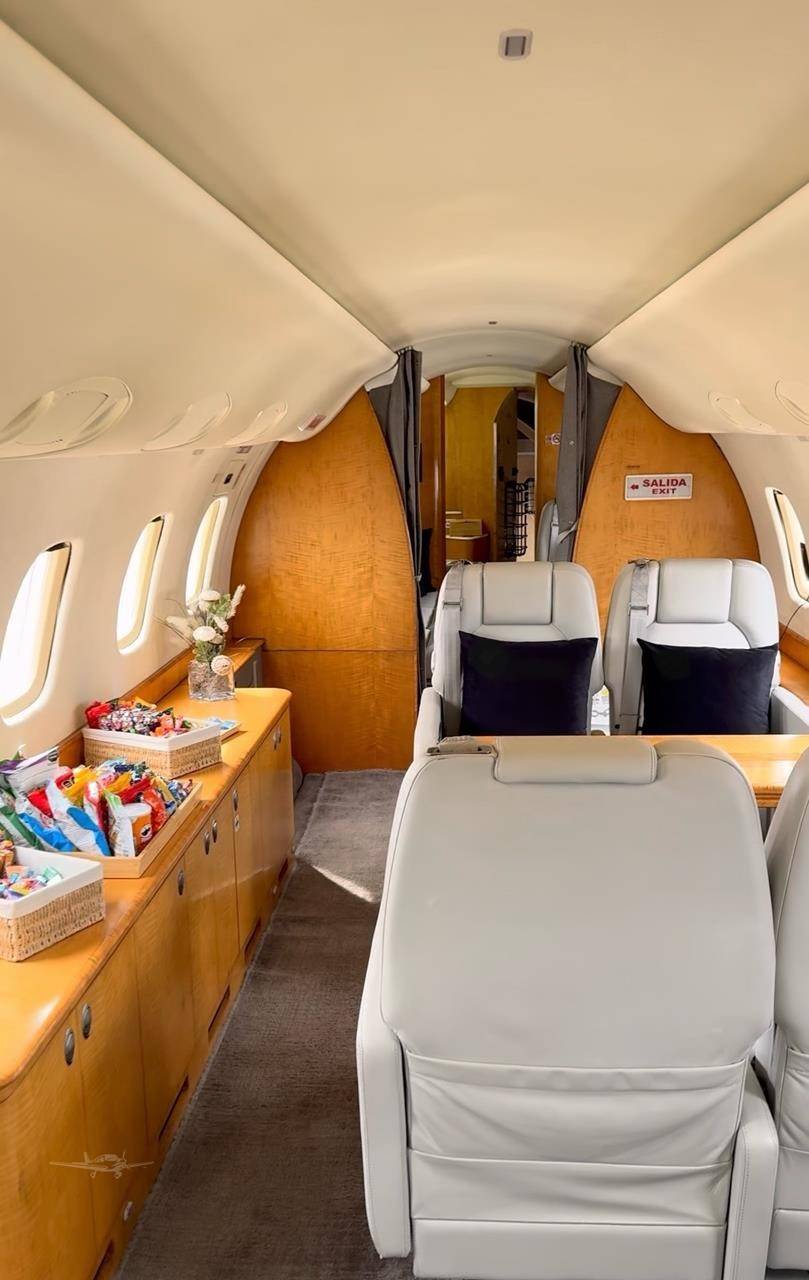 В отличие от короткого и широкого салона главного конкурента — Challenger 605 — салон Legacy 600, напротив, длинный и более узкий. Здесь хватает места для создания трех обособленных зон. Хвостовая выполняет роль спальни. На борту есть гардероб и полноценная кухня. Embraer не отстают от конкурентов и по части технического оснащения интерьера. Предусмотрены сенсорные пульты управления, HD-телевизоры, приложение для управления настройками салона со смартфона и всевозможные варианты интеграции планшетников.