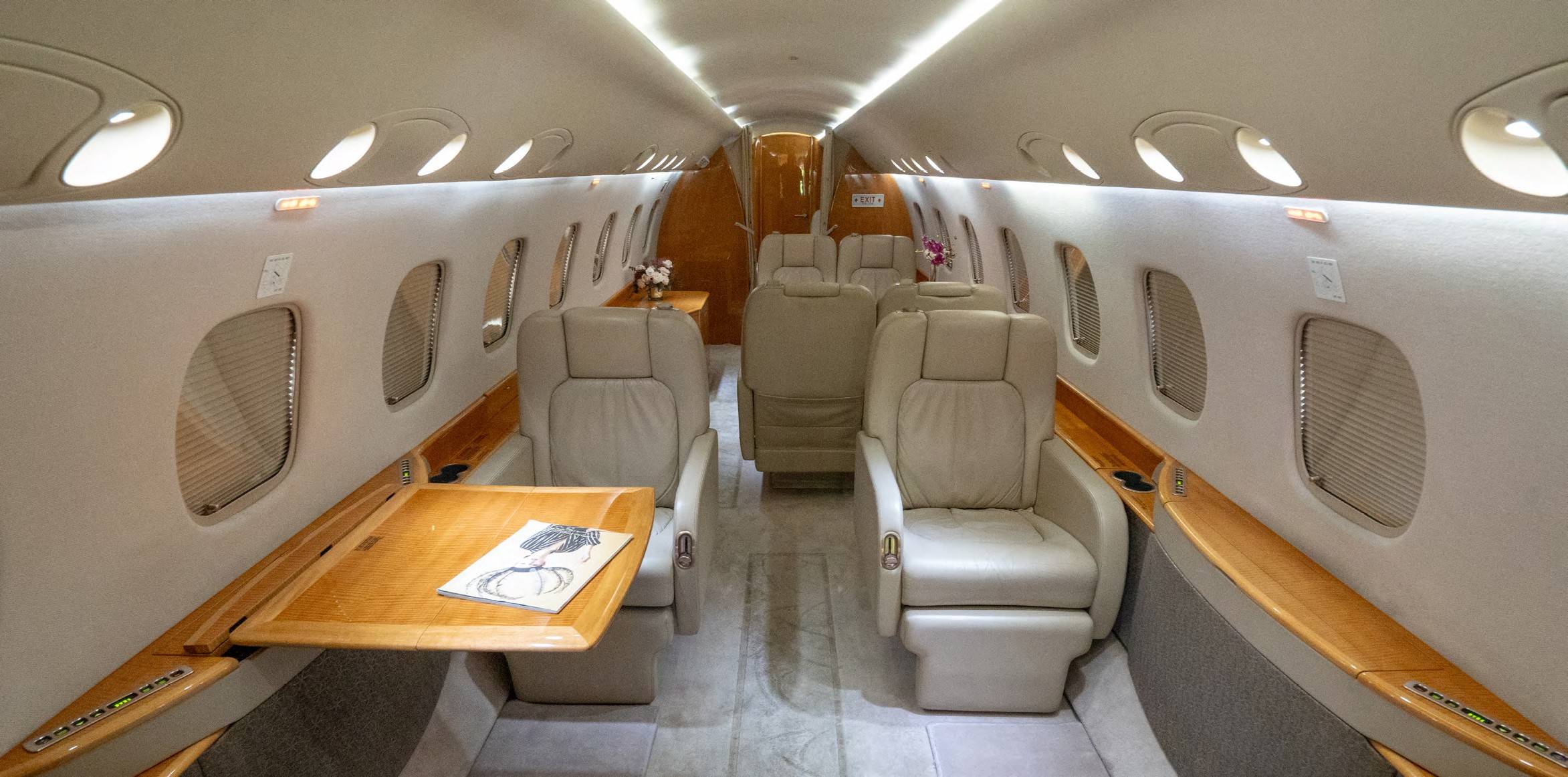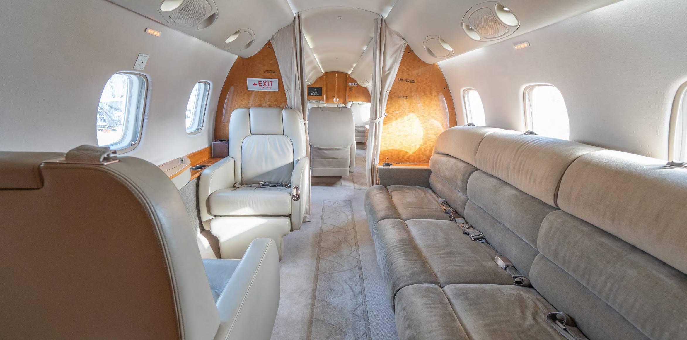 В отличие от короткого и широкого салона главного конкурента — Challenger 605 — салон Legacy 600, напротив, длинный и более узкий. Здесь хватает места для создания трех обособленных зон. Хвостовая выполняет роль спальни. На борту есть гардероб и полноценная кухня. Embraer не отстают от конкурентов и по части технического оснащения интерьера. Предусмотрены сенсорные пульты управления, HD-телевизоры, приложение для управления настройками салона со смартфона и всевозможные варианты интеграции планшетников.