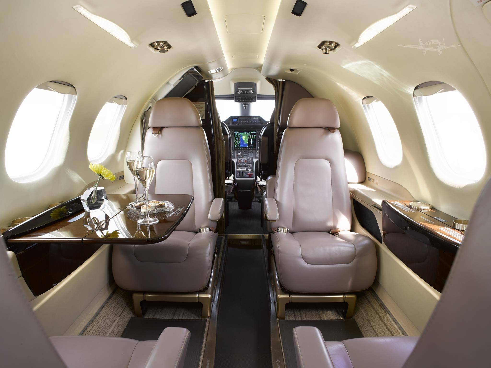 Салон Phenom 100E объемом 8 м3 шире, выше и в целом просторнее, чем у Cessna Citation M2. Он также несколько шире, чем у HondaJet, однако у японского конкурента салон длиннее более чем на 30 см. Что касается багажа, то в общей сложности под него отведено 1,75 м3, включая внешний багажный отсек, вмещающий помимо чемоданов четыре пары лыж, а также гардероб в передней части салона, объемом 0,17 м3.