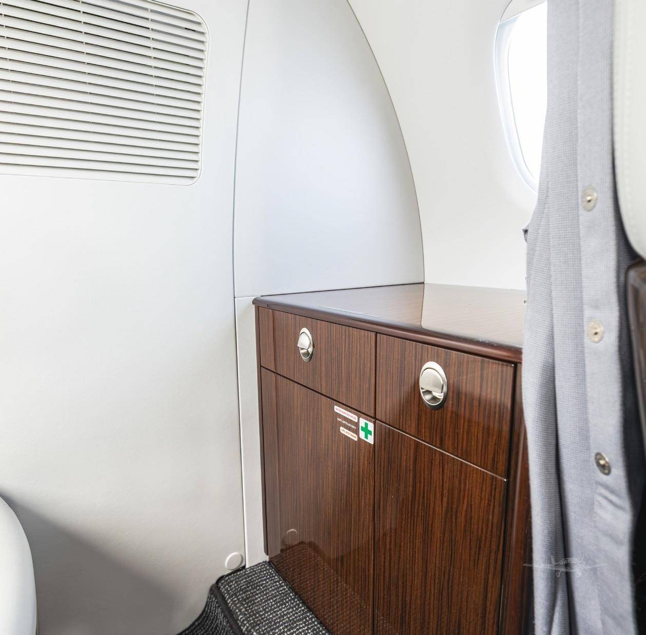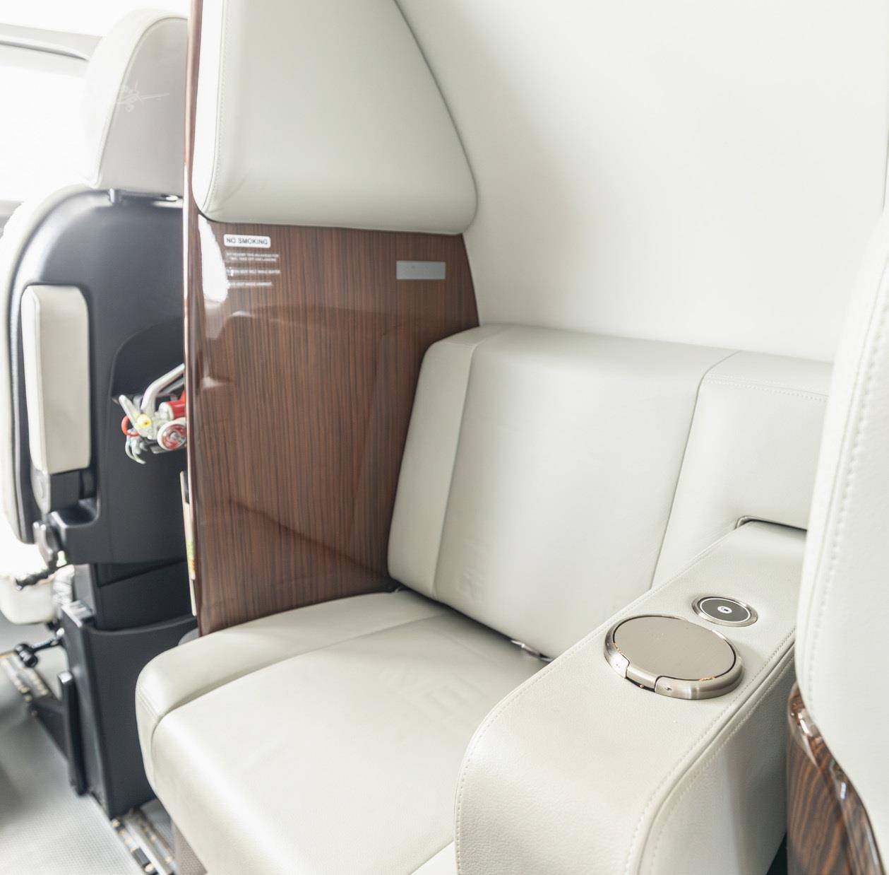 В этом небольшом самолете могут разместиться до 7 пассажиров, включая одного на месте второго пилота, хотя удобнее всего летать вчетвером на специально отведенных для этого сиденьях. С новыми креслами, которые можно регулировать, появляется свобода перемещения, которой не было раньше. Интерьер Phenom 100EV в свое время разработали специалисты дизайн-студии BMW Group Designworks USA.